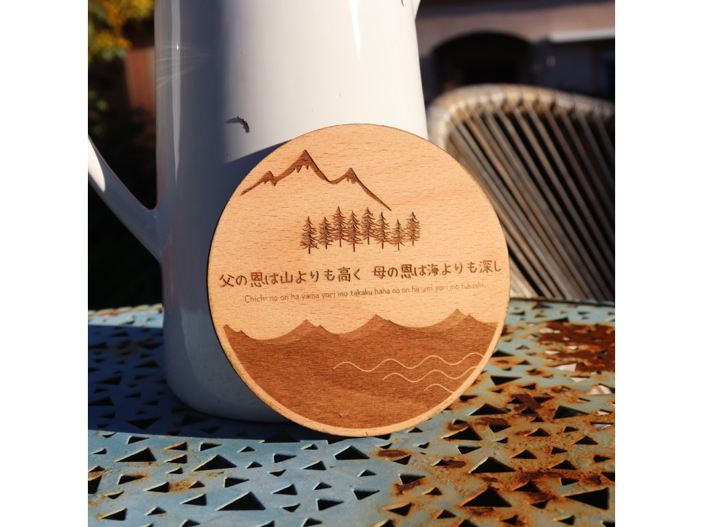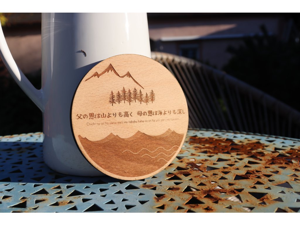 Japonské přísloví na podtácku praví: Láska otce je vyšší než hora, láska matky je hlubší než moře