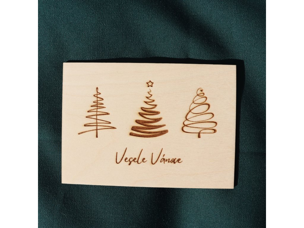 Originální dřevěné vánoční přání s nápisem „Veselé Vánoce“, které spojuje přání, dárek i dekoraci v jednom. Minimalistický design a přírodní materiál přinášejí do svátků jednoduchost, klid a dotek přírody.